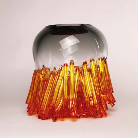 L25 x W25 x H19 cm, L30 x W30 x H24 cm, L36 x W36 x H29 cmamber glass, hand-blown glass2025