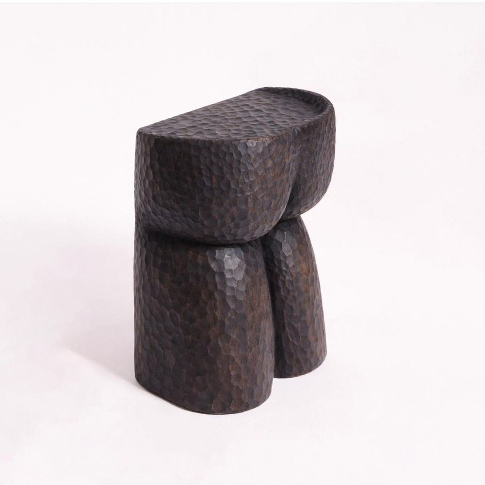 Solid wood stool, hand-sculpted into a butt form. A playful reflection on equality — we all have one