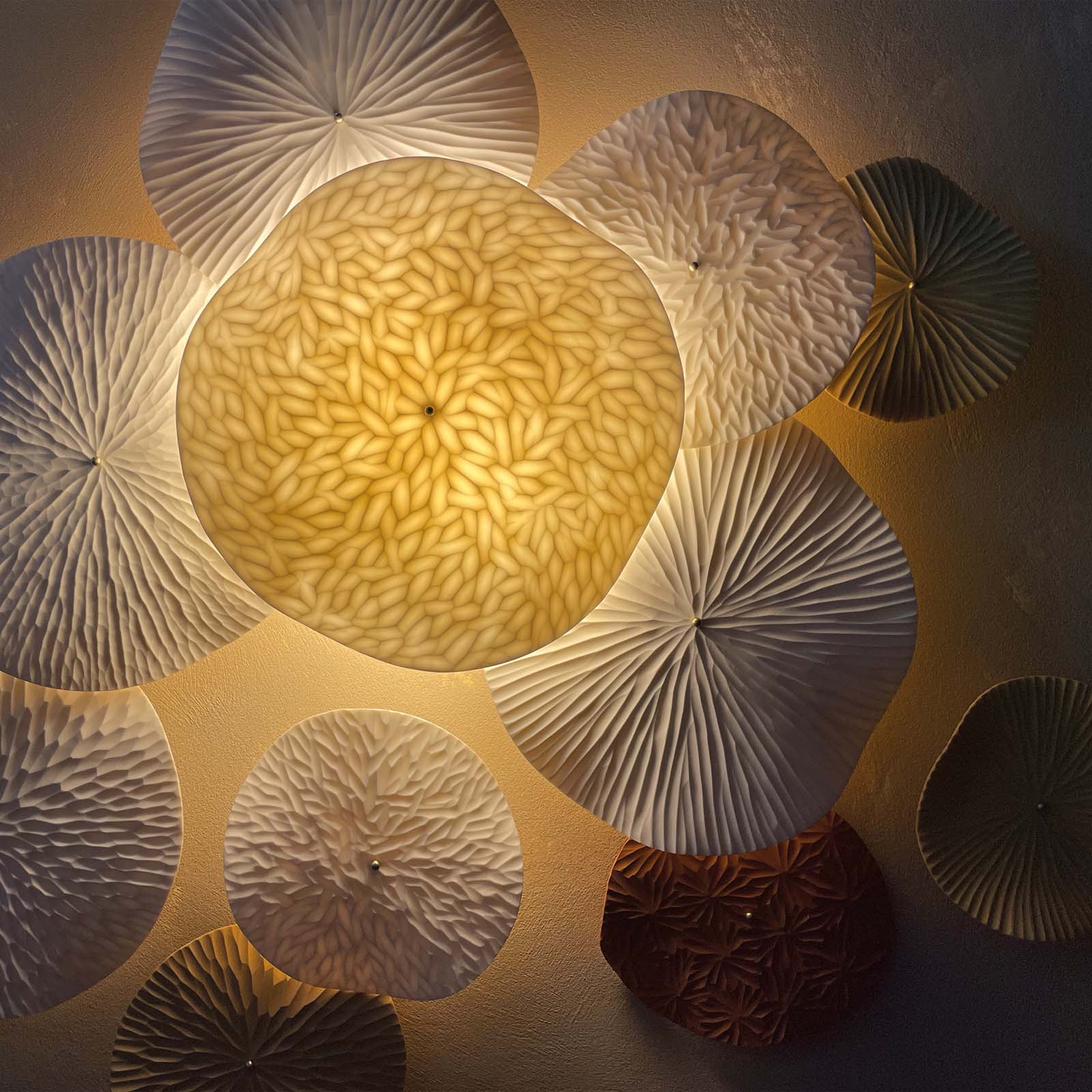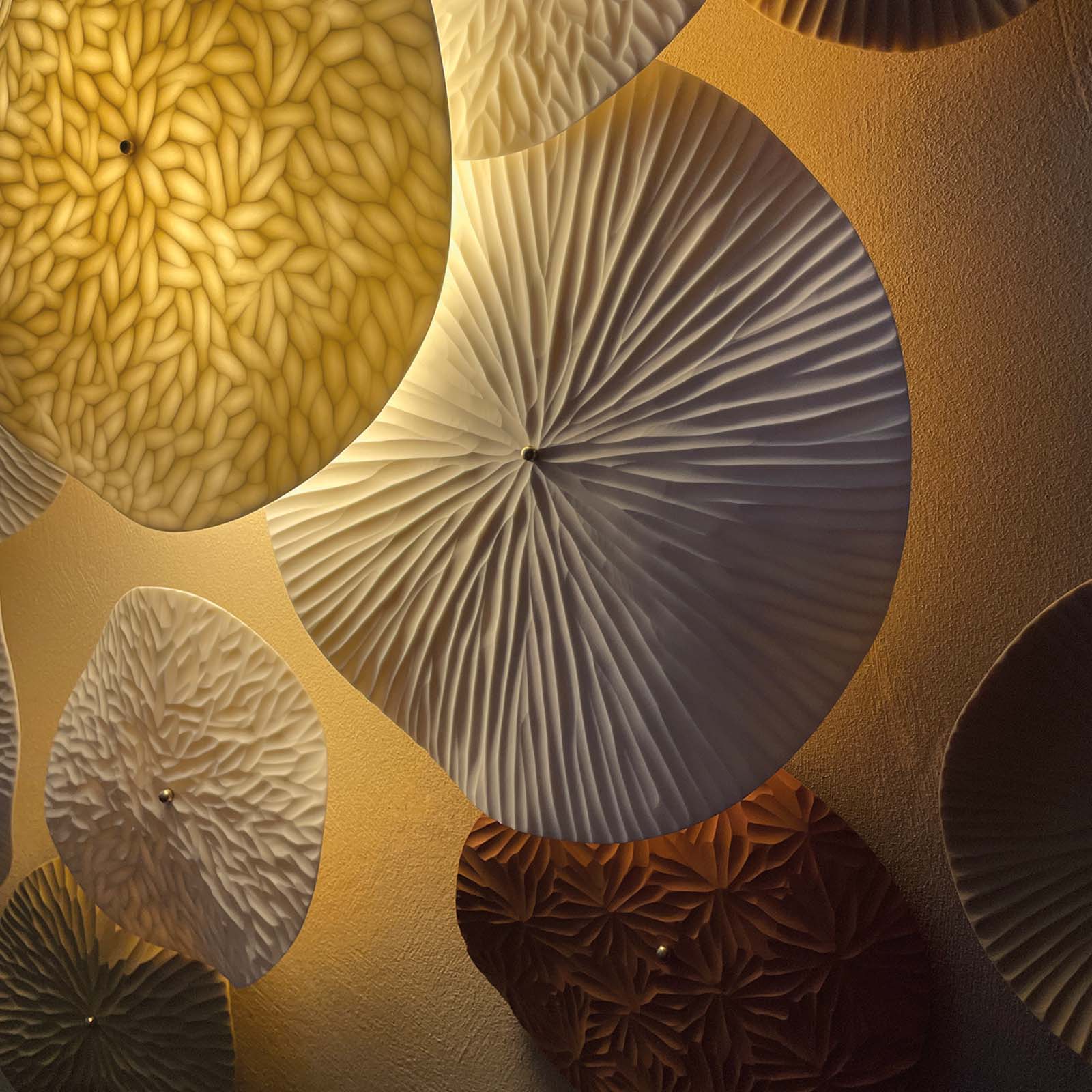 Coral Reef is the latest wall installation by Vezzini & Chen, set to be launched at the Rossana Orlandi Gallery during Milan Design Week 2026. This hand-carved porcelain installation draws inspiration from the intricate forms and subtle rhythms of coral reefs. Clusters of coral-like structures are echoed in porcelain discs, each meticulously hand carved with a diverse array of patterns and textures. Every piece is shaped with sensitivity and precision, reflecting the artists’ deep connection to the underwater world as avid scuba divers. The interplay of light and shadow across the carved porcelain evokes the living pulse of underwater ecosystems—honouring their fragility while celebrating their beauty.