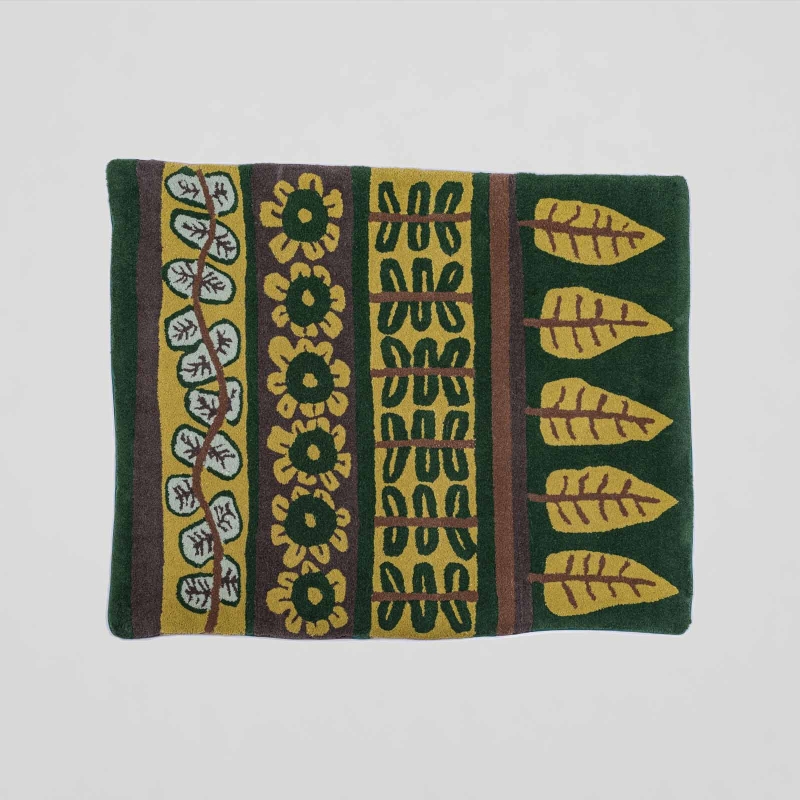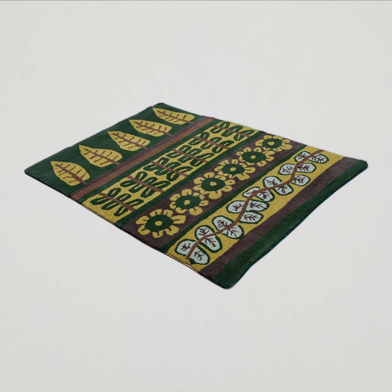 The collection, composed of 10 pieces, is an expression of hope inspired by nature. There are 9 rugs and an innovative puff, reflecting the vitality and freshness of an enveloping garden, woven in 100% wool especially for this occasion. “Garden” appears as a space of hope and salvation, “a garden where you can project a moment of happiness. Like nature is part of culture and surrounds us since the beginning of creative expression. We decided to create a timeless garden reminiscent of childhood inspired by outsider art, with the innocence of wildly drawn flowers, cut-out leaves, botanical collages and a flower bed,” says Lidewij Edelkoort in his curatorial text. Conceived from the sketches of Brazilian artist Sergio Machado, the collection captures the essence of manual techniques such as watercolor and collage. In translating the designs to fabric, El Espartano sought to preserve the organic style, free stroke and spontaneity of the artist in the creative process. Each piece in the collection is unique. Its intentional irregular boundaries accentuate the playful spirit. All of them were woven with tufting system and have handcrafted finishing details that enhance their quality.