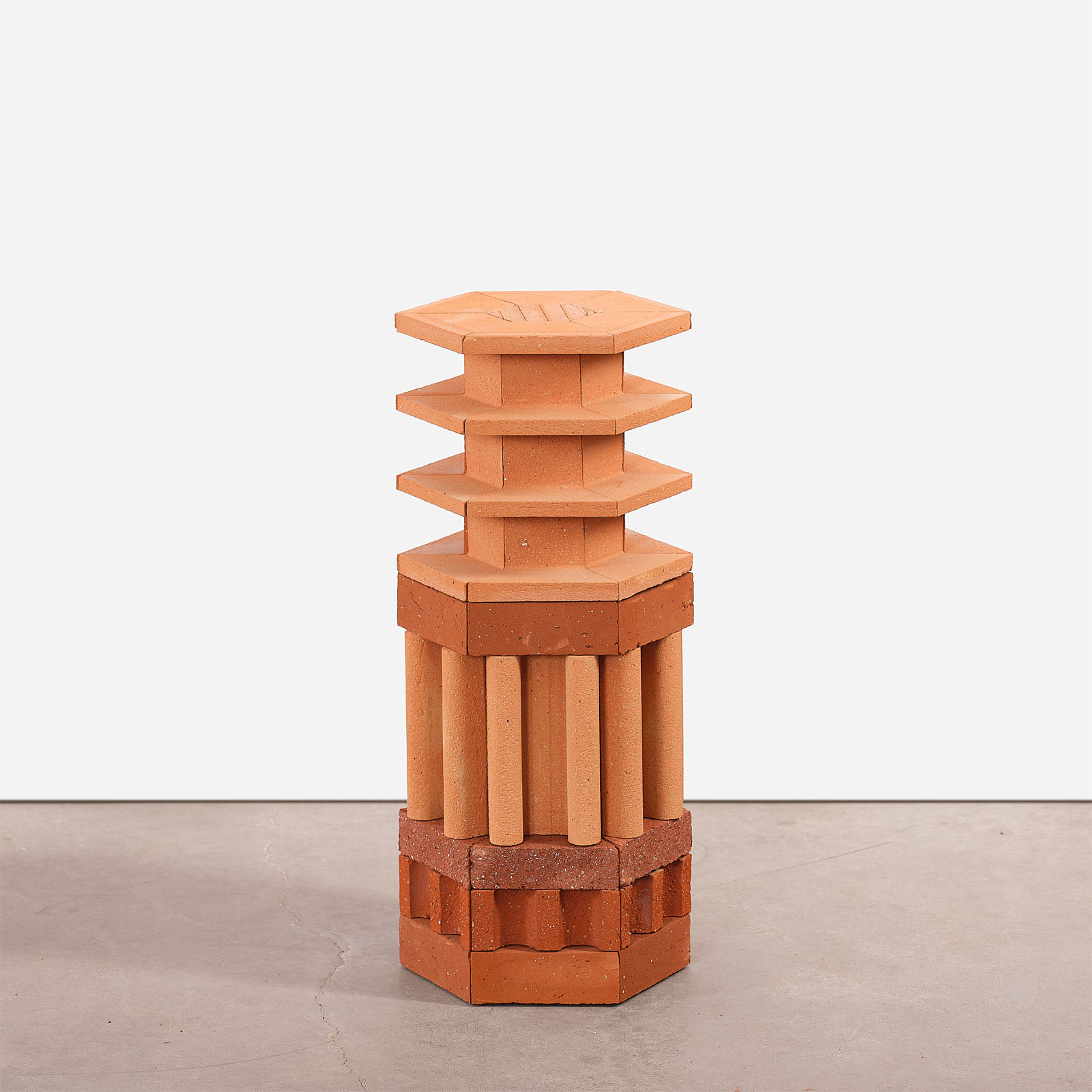 Bricks are made of earth but they are industrially produced and nowadays they symbolize a society which has been driven continuously by money and productivity. Highlighting their subtile colors, their extensive textures and their graphical qualities, Aurélien Veyrat resets our vision : while looking at his columns or sculptures of repeated elements, we feel a confrontation between past and future, between low- and high-technology, between industry and craft. As an archeologist, Aurélien Veyrat keeps, classifies, archives all the precious wastes he creates by sculpting bricks. This parts inspires him new shapes and new associations. As far as his wastes go smaller, he has a new challenge. Questioning the relation between decor and construction, with common elements we never care about, he develops his own imaginary spaces and let the visitors interpret scales and combinaisons in their own ways. We can be moved by the beauty of these ruins while our world seems so troubled.