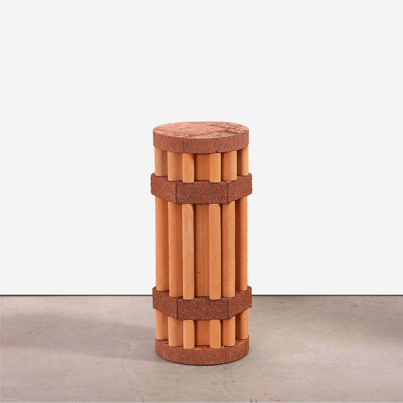 Bricks are made of earth but they are industrially produced and nowadays they symbolize a society which has been driven continuously by money and productivity. Highlighting their subtile colors, their extensive textures and their graphical qualities, Aurélien Veyrat resets our vision : while looking at his columns or sculptures of repeated elements, we feel a confrontation between past and future, between low- and high-technology, between industry and craft. As an archeologist, Aurélien Veyrat keeps, classifies, archives all the precious wastes he creates by sculpting bricks. This parts inspires him new shapes and new associations. As far as his wastes go smaller, he has a new challenge. Questioning the relation between decor and construction, with common elements we never care about, he develops his own imaginary spaces and let the visitors interpret scales and combinaisons in their own ways. We can be moved by the beauty of these ruins while our world seems so troubled.