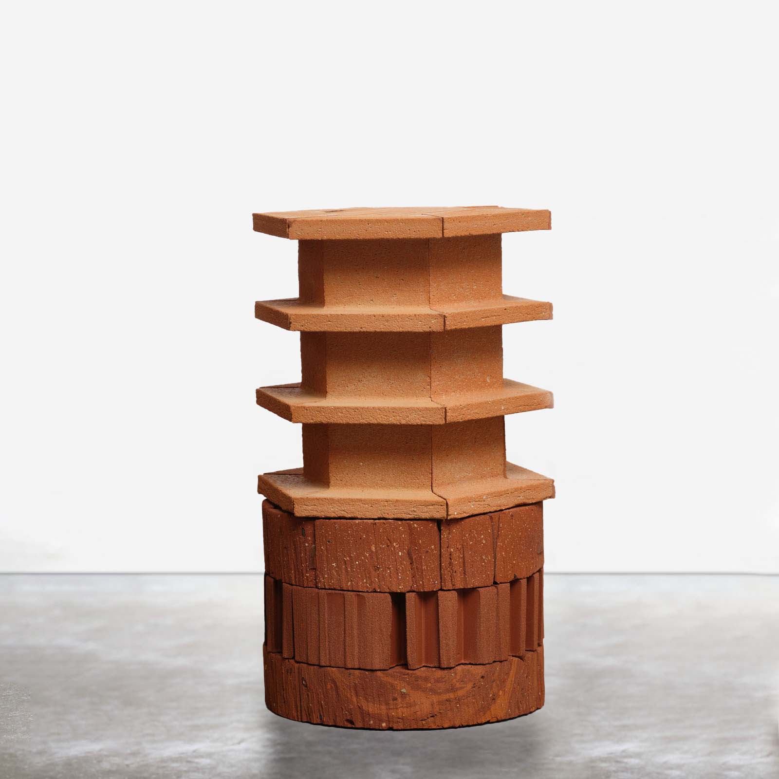 Bricks are made of earth but they are industrially produced and nowadays they symbolize a society which has been driven continuously by money and productivity. Highlighting their subtile colors, their extensive textures and their graphical qualities, Aurélien Veyrat resets our vision : while looking at his columns or sculptures of repeated elements, we feel a confrontation between past and future, between low- and high-technology, between industry and craft. As an archeologist, Aurélien Veyrat keeps, classifies, archives all the precious wastes he creates by sculpting bricks. This parts inspires him new shapes and new associations. As far as his wastes go smaller, he has a new challenge. Questioning the relation between decor and construction, with common elements we never care about, he develops his own imaginary spaces and let the visitors interpret scales and combinaisons in their own ways. We can be moved by the beauty of these ruins while our world seems so troubled.