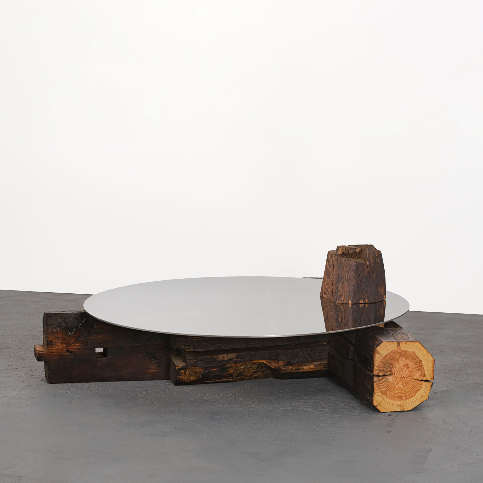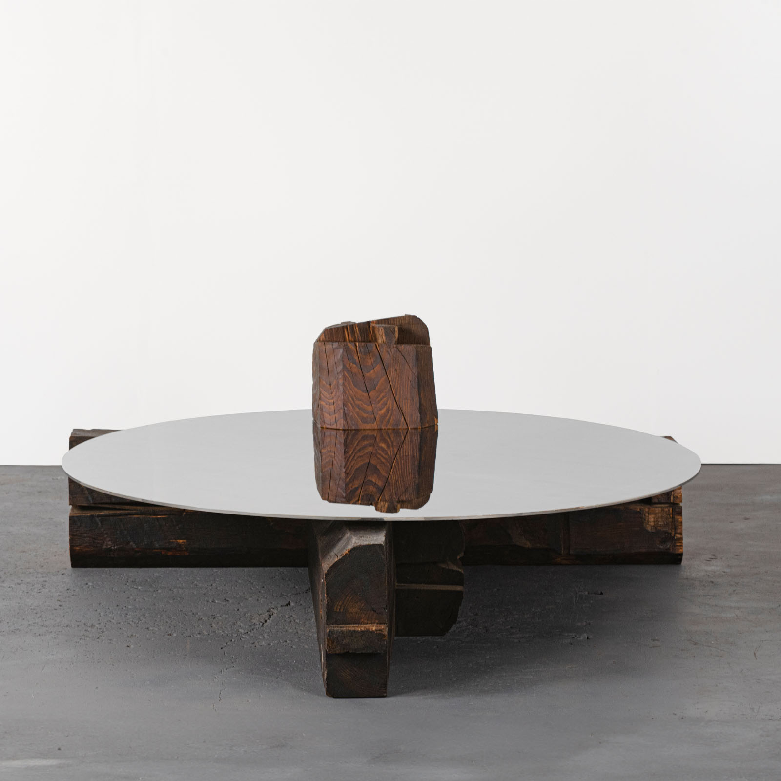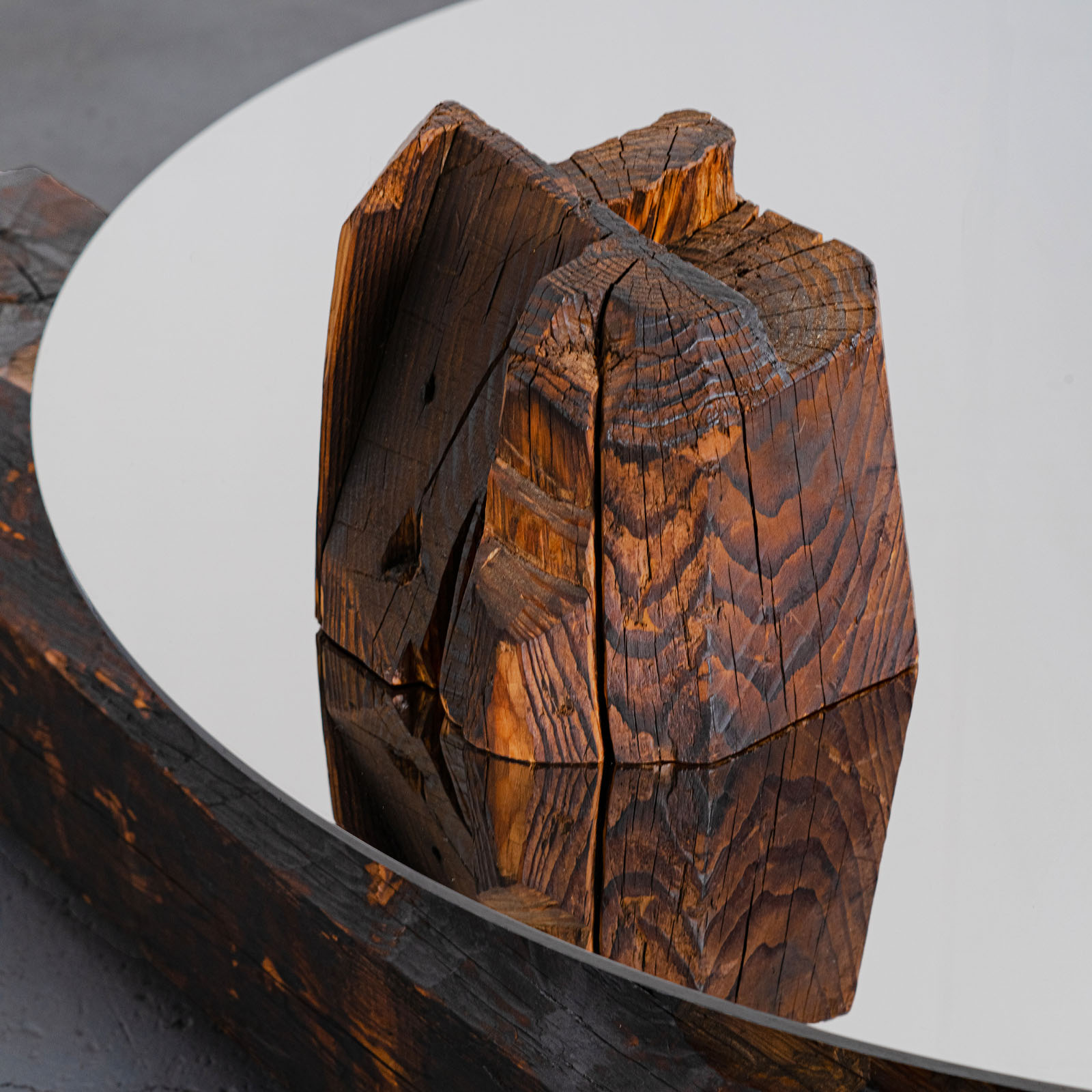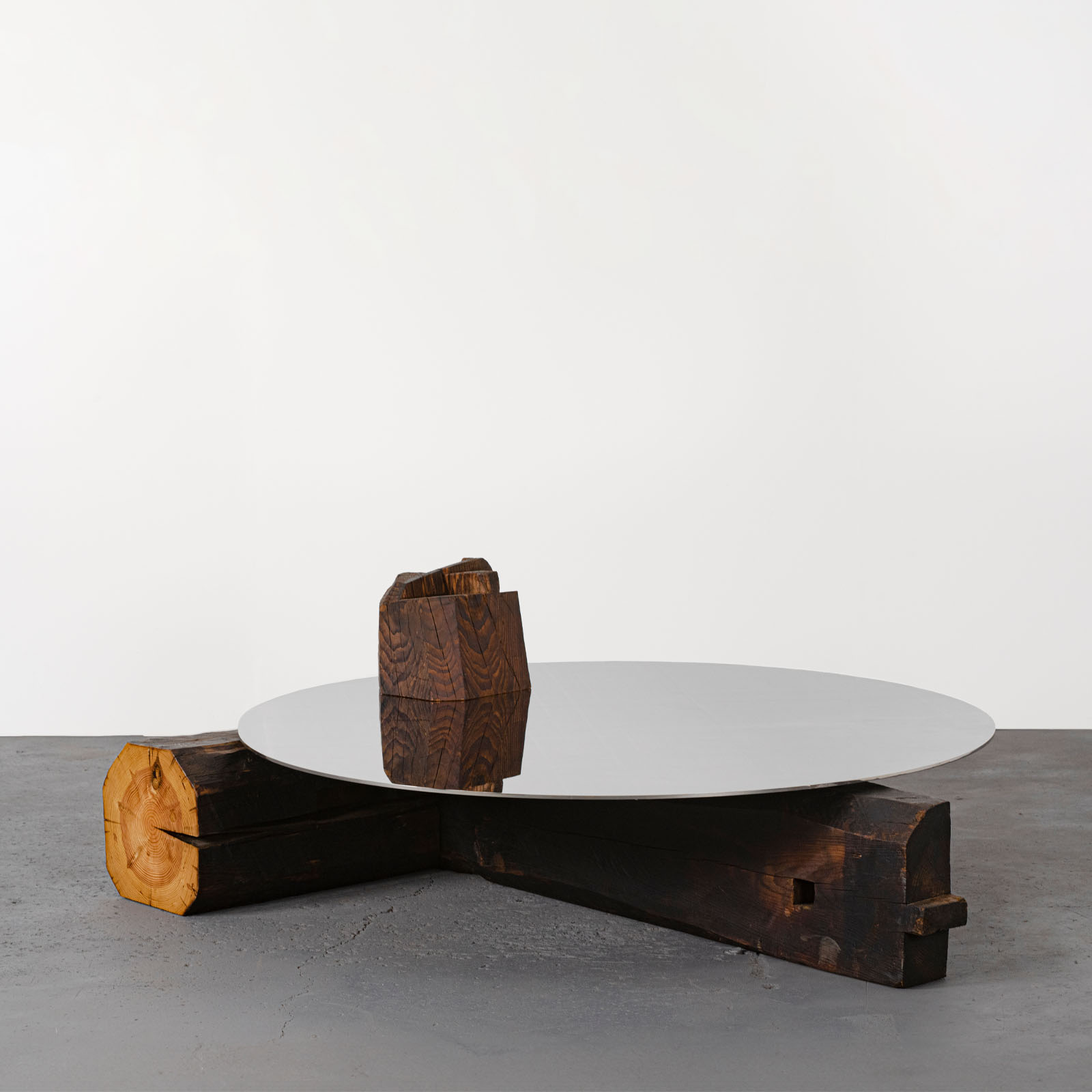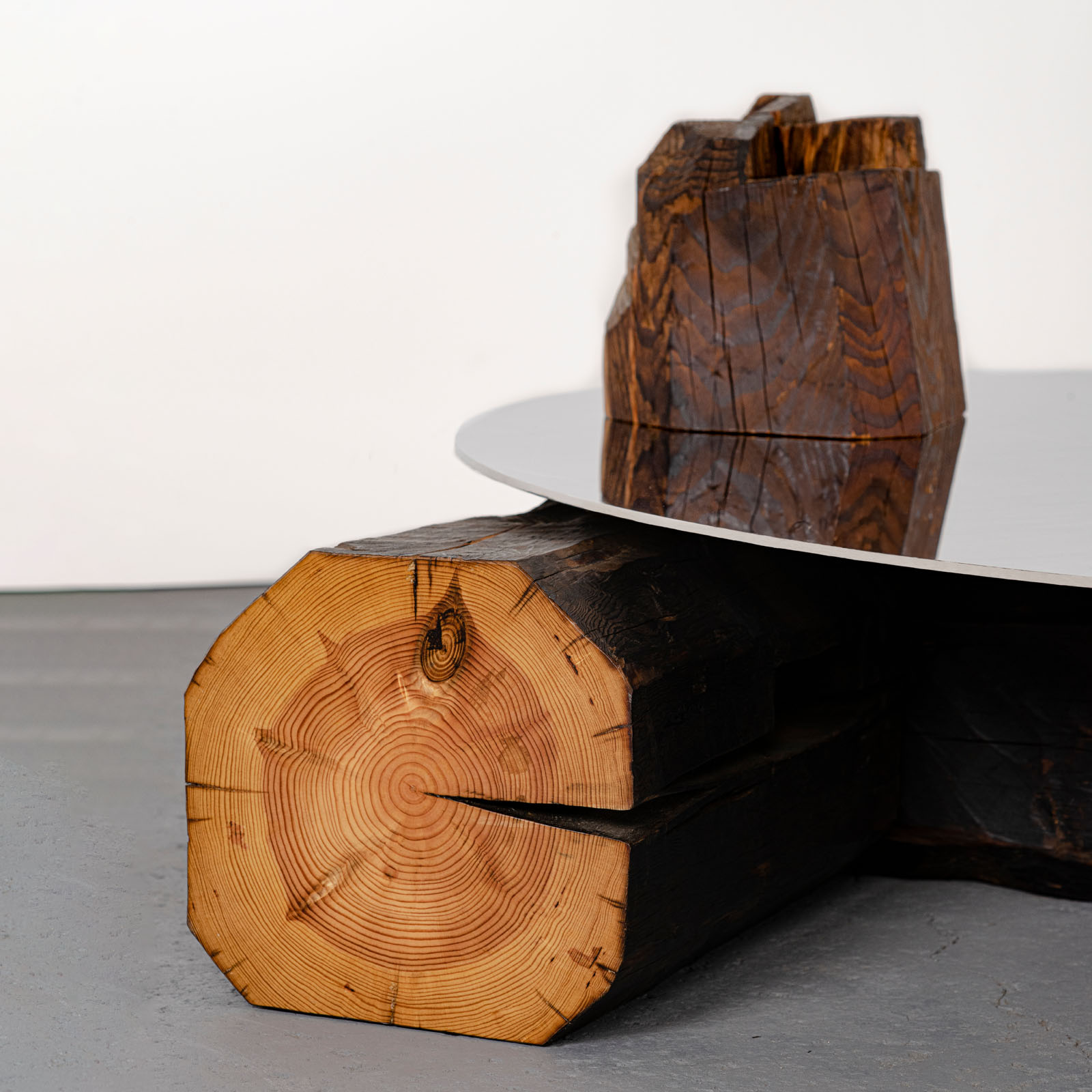 Roberto Sironi’s work is rooted in research and anthropological inquiry, transforming centuries-old wooden beams salvaged from Japanese vernacular Kominka houses into sculptural objects that narrate to memory, time, and matter legacy. In Future Memories, he establishes a powerful dialogue between natural and artificial; the time-worn, hand-carved wooden beams are mirrored by precise, polished-steel surfaces that multiply perspectives and reveal hidden details. Time becomes a tangible material – visible, reflective, and layered – evoking the philosophical and aesthetic principles of ancient Japan. Through this approach, the project foregrounds the philosophical and cultural value of Japanese vernacular architecture, where design emerges from a profound coexistence between humans and nature.