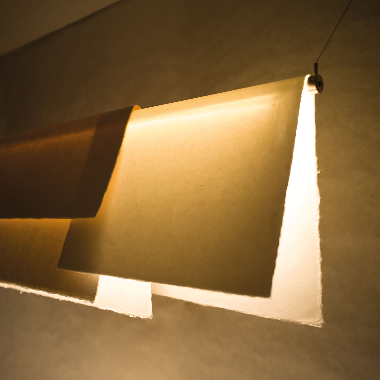 My designs draw inspiration from the traditional way Joseon dynasty kings’ dragon robes (gonryongpo) were hung, as well as from classical torch stands (hwadae). I also fold hanji to create variations in light transmission between heavily overlapped and less overlapped sections. By utilizing the resulting differences in shading and color temperature, I design pieces where light spreads through the hanji fibers, producing a texture that appears almost tactile — as if one could touch the hanji with their eyes.