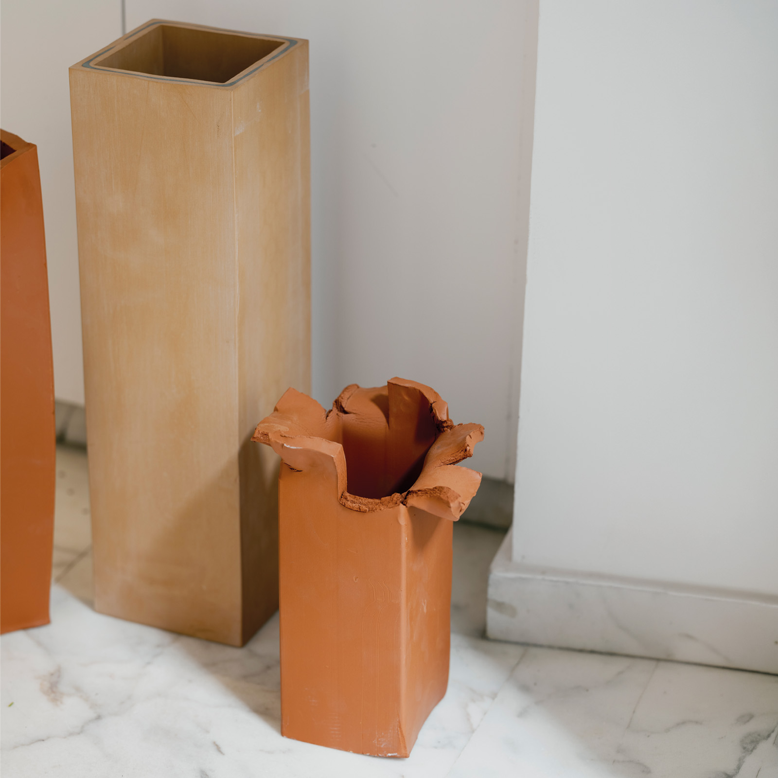 Unique piece. A moment in the process frozen during the manufacture of ceramic pieces by extrusion at the Nuet factory in Teruel, Spain.
