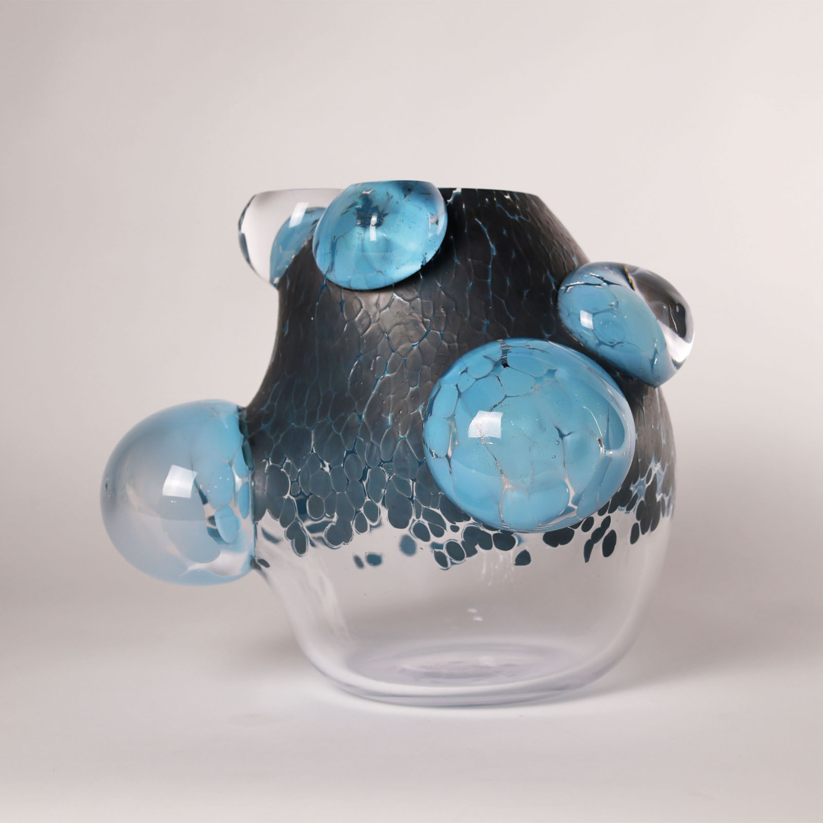 Oxydis emerged from the instability of copper pigment, behaving unexpectedly in the fire. Starting with copper’s original blue shade, surfaces exposed to fire transform into metallic reflections. Meanwhile, areas protected by clear crystal preserve its vibrant blue. In Oxydis, material shifts beyond intention, resulting in dynamic, unstable surfaces sculpted by heat and light.