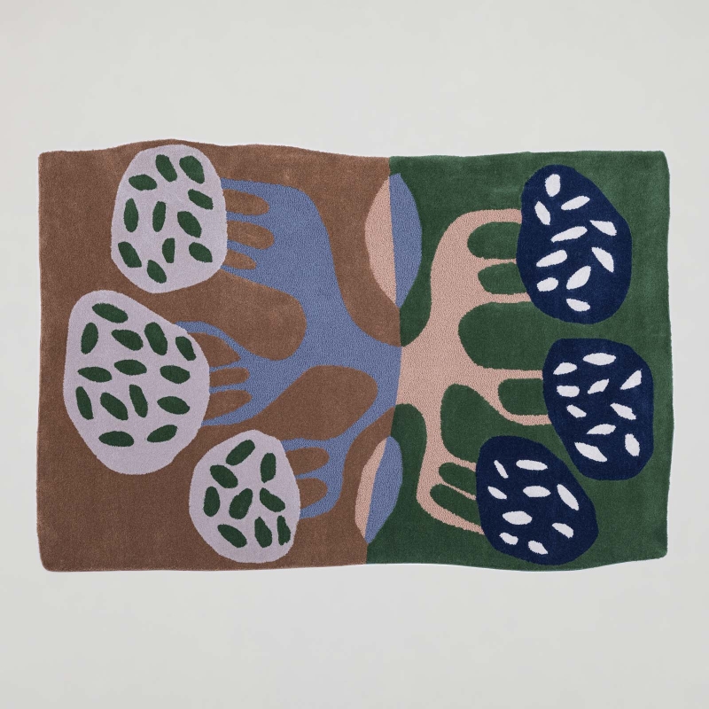 The collection, composed of 10 pieces, is an expression of hope inspired by nature. There are 9 rugs and an innovative puff, reflecting the vitality and freshness of an enveloping garden, woven in 100% wool especially for this occasion. “Garden” appears as a space of hope and salvation, “a garden where you can project a moment of happiness. Like nature is part of culture and surrounds us since the beginning of creative expression. We decided to create a timeless garden reminiscent of childhood inspired by outsider art, with the innocence of wildly drawn flowers, cut-out leaves, botanical collages and a flower bed,” says Lidewij Edelkoort in his curatorial text. Conceived from the sketches of Brazilian artist Sergio Machado, the collection captures the essence of manual techniques such as watercolor and collage. In translating the designs to fabric, El Espartano sought to preserve the organic style, free stroke and spontaneity of the artist in the creative process. Each piece in the collection is unique. Its intentional irregular boundaries accentuate the playful spirit. All of them were woven with tufting system and have handcrafted finishing details that enhance their quality.