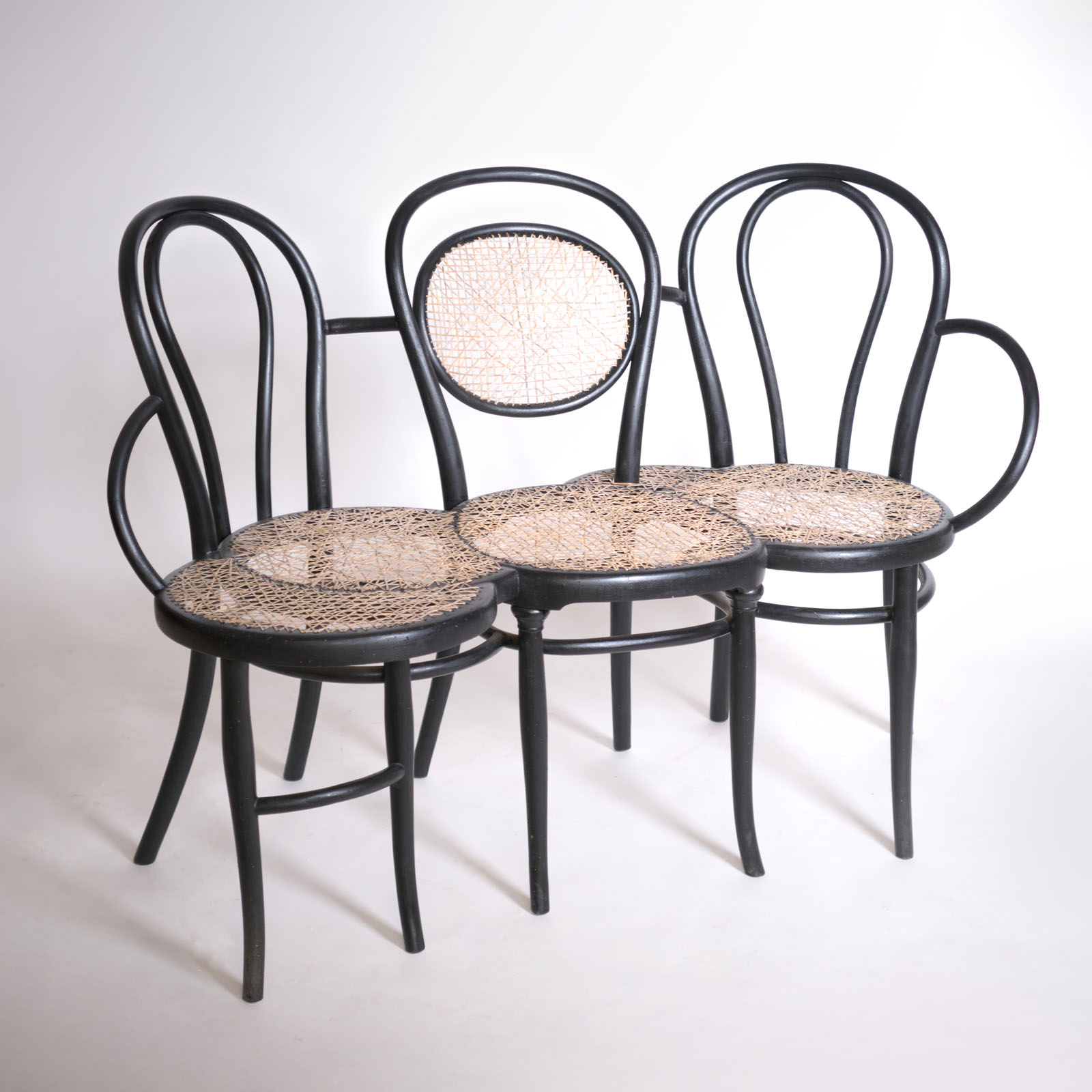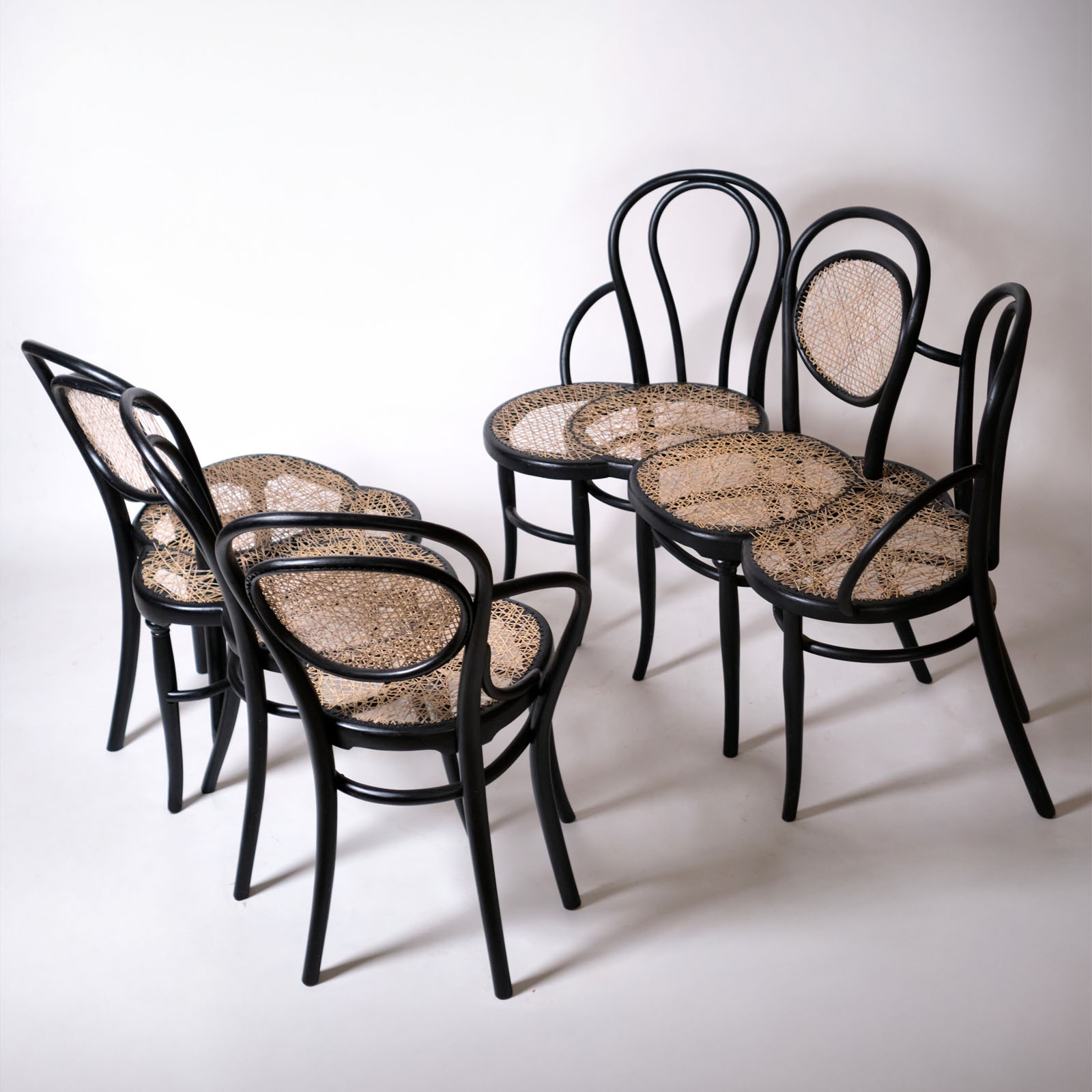 I have always felt a deep connection to Thonet chairs. Their essential design and the remarkable wood-bending technique embody, to me, a perfect balance between aesthetics and craftsmanship. Over the years, I have collected original pieces found in flea markets across Europe, preserving them while waiting to understand their future. Many of these chairs, marked by time, neglect, and sometimes woodworm damage, carried structural fragility but also a powerful expressive presence. My intervention stems from the desire to transform fragility into renewed strength: I remove the irreparably damaged parts and assemble the remaining solid elements together, creating hybrid structures in which the healthy components support one another. The result is a series of small benches and unique seating pieces. Each form is unrepeatable, shaped by the original material. The Vienna straw, entirely handwoven, completes the work, restoring dignity and new life to objects that bear the marks of time.