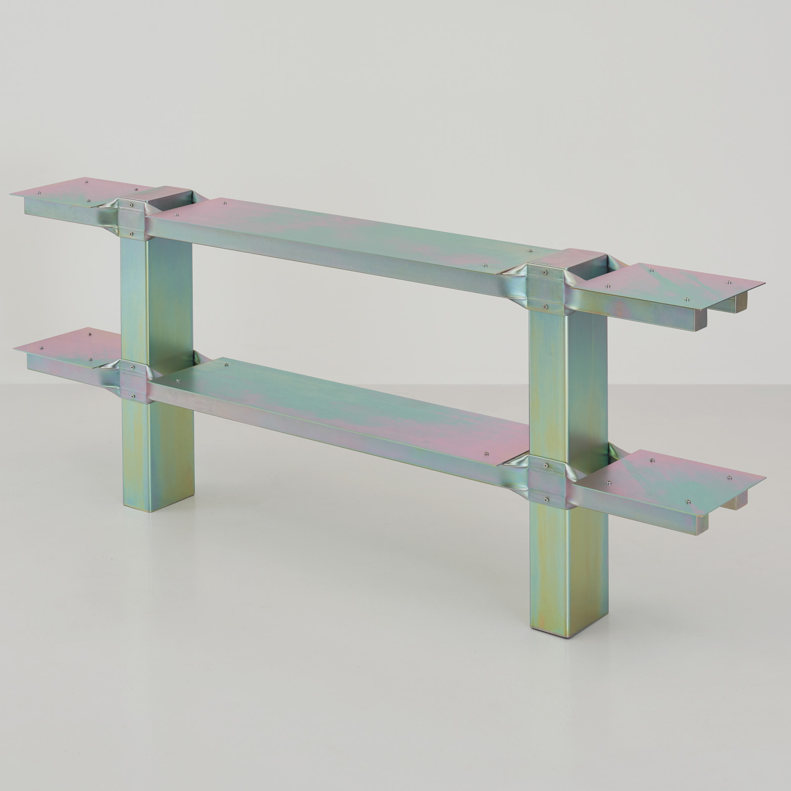 Tim Teven is committed to creating work that derives out of material experiments which include mechanical actions to deform metal. Out of these experiments Teven obtains processing systems that allow him to effectively exploit the material properties, and the proporties of the accruing deformation in shape: Technical and mechanical gestures that translate into a self-made aesthetic.