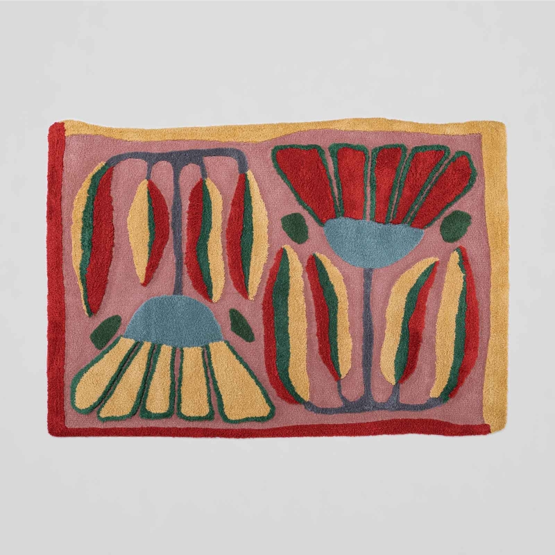 The collection, composed of 10 pieces, is an expression of hope inspired by nature. There are 9 rugs and an innovative puff, reflecting the vitality and freshness of an enveloping garden, woven in 100% wool especially for this occasion. “Garden” appears as a space of hope and salvation, “a garden where you can project a moment of happiness. Like nature is part of culture and surrounds us since the beginning of creative expression. We decided to create a timeless garden reminiscent of childhood inspired by outsider art, with the innocence of wildly drawn flowers, cut-out leaves, botanical collages and a flower bed,” says Lidewij Edelkoort in his curatorial text. Conceived from the sketches of Brazilian artist Sergio Machado, the collection captures the essence of manual techniques such as watercolor and collage. In translating the designs to fabric, El Espartano sought to preserve the organic style, free stroke and spontaneity of the artist in the creative process. Each piece in the collection is unique. Its intentional irregular boundaries accentuate the playful spirit. All of them were woven with tufting system and have handcrafted finishing details that enhance their quality.