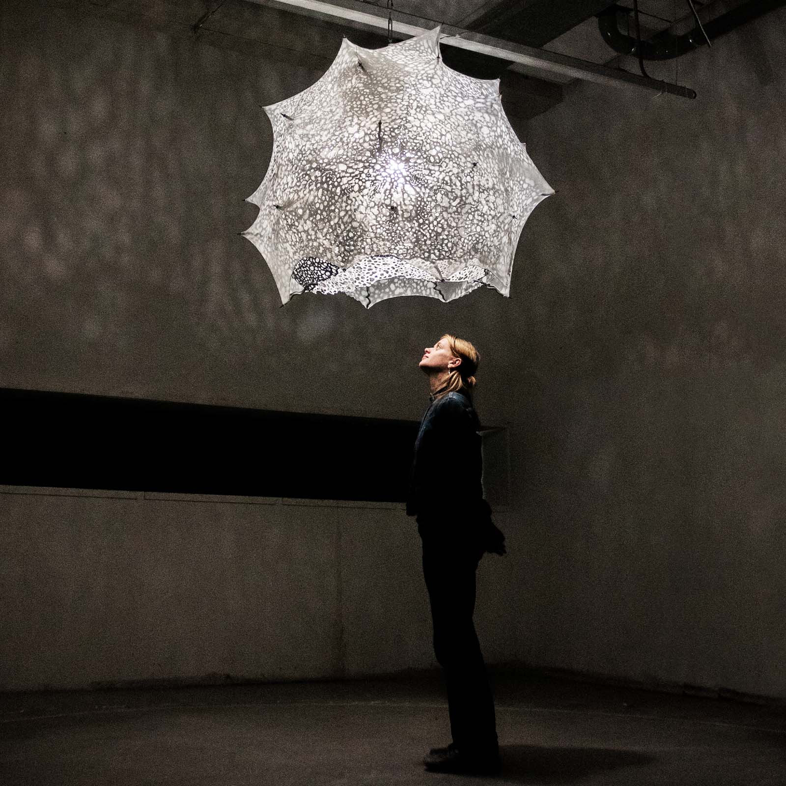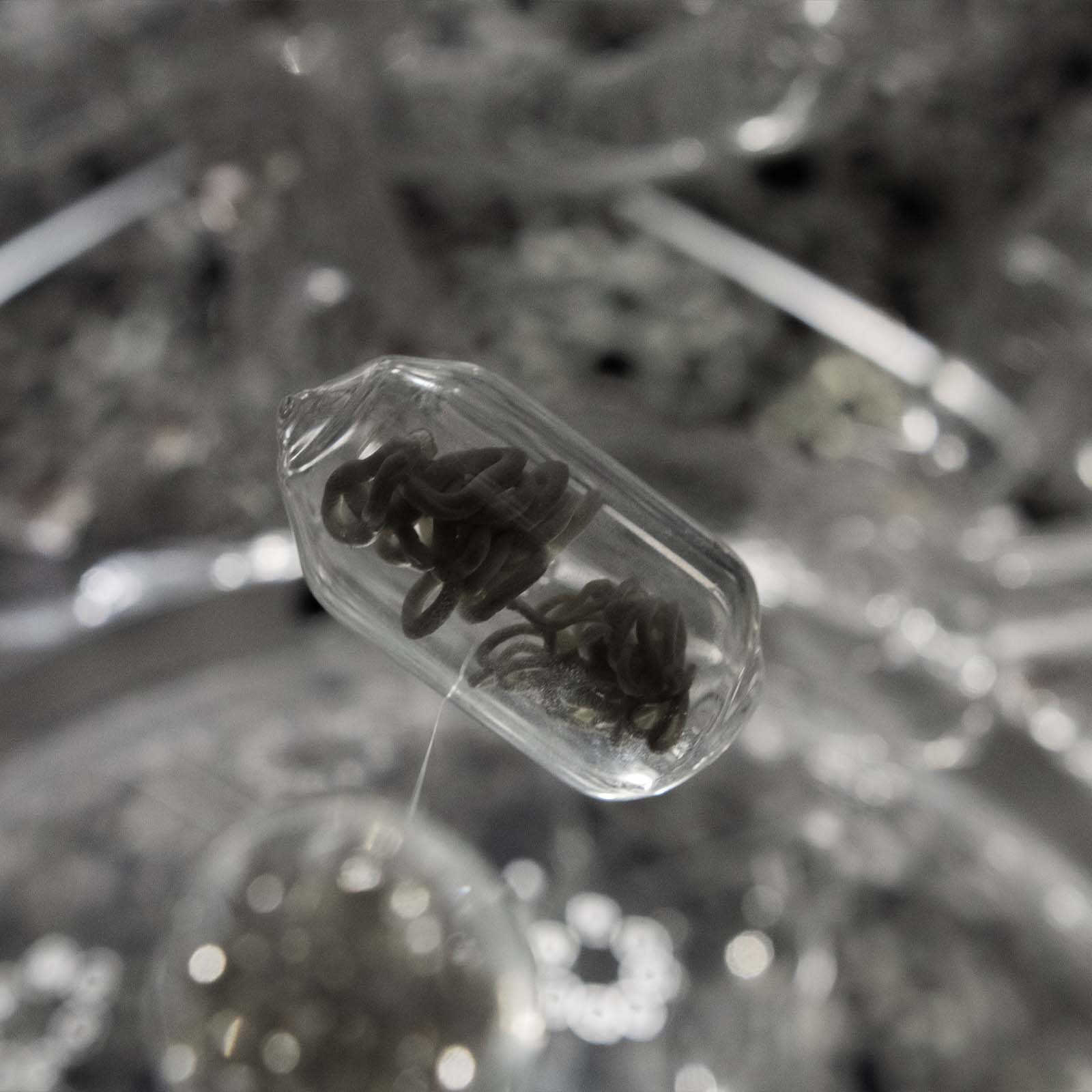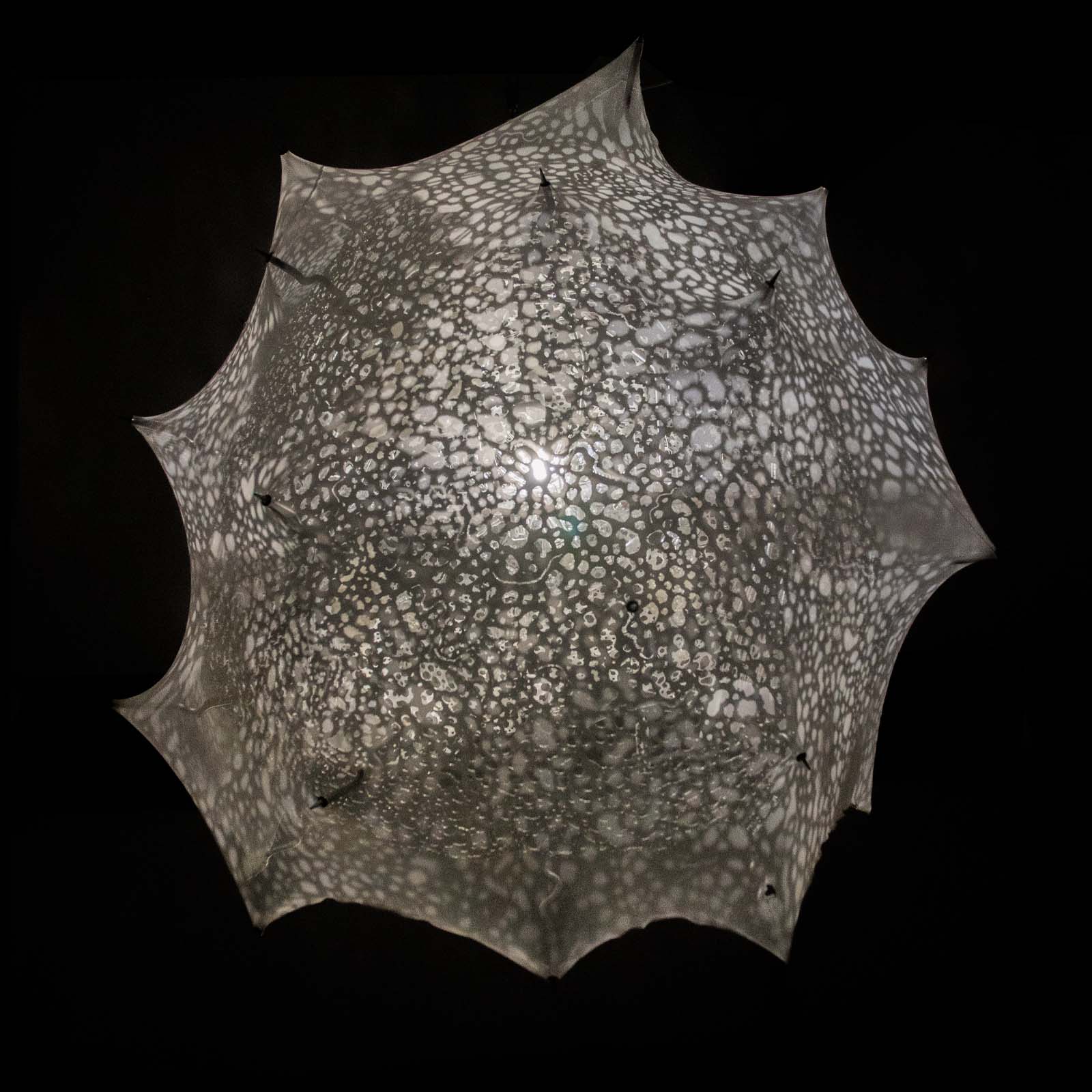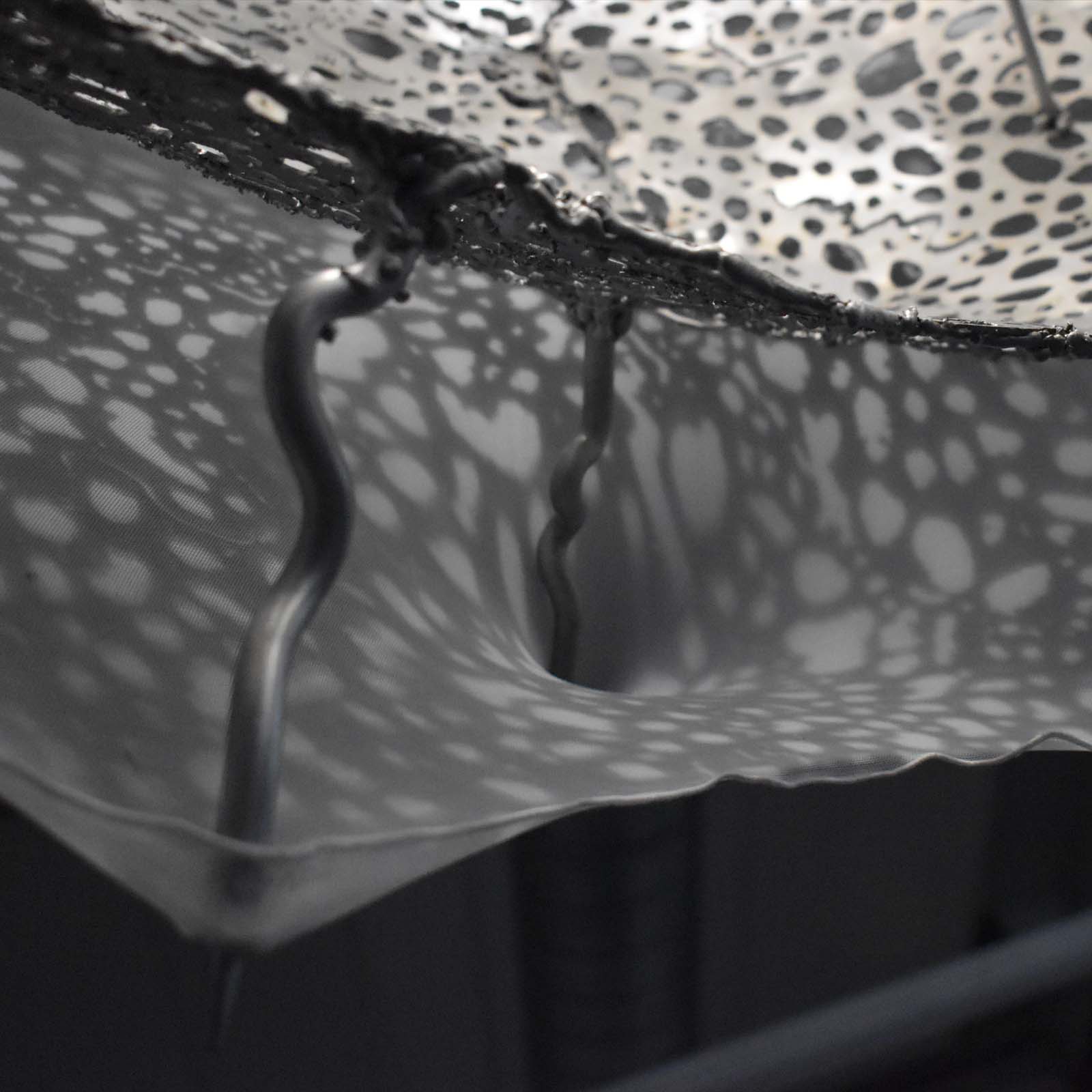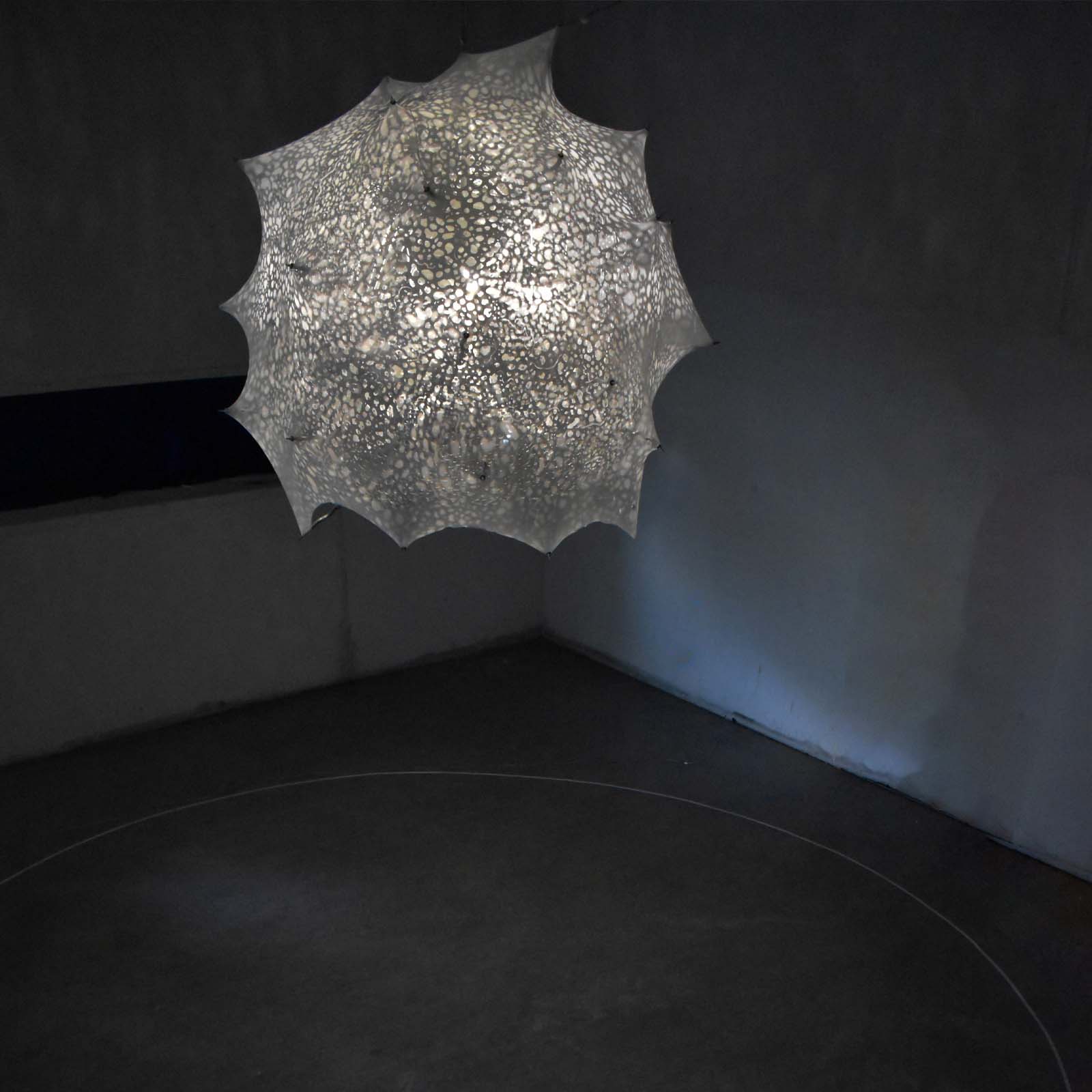Our bodies are made out of trillions of Cells. Like microscopic factories, these are some of most technologically advanced places in this world, yet remain inaccessible to us without microscopes. ‘What we are’ is an engaging, educational scale model of a Eukaryotic Cell, the blueprint of all animal, plant and fungal life. The model takes us on a journey down the microscope, to a scale smaller than a hair’s width, the Micro-world. It allows us to gaze inside one of our Cells, and explore the beautiful forms that thrive within. It creates a space for learning about our anatomy in an imersive way. Crafted from glass, aluminium, textile and a variety of other materials, this scientifically accurate, yet captivating model uses movement and light to present the micro-world as spatial, detailed, limitlessly complicated, wondrous and alive.