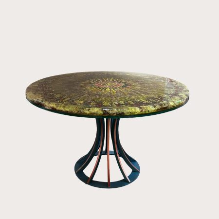 Manu Crotti is an artist based in Crema, Italy. Her work has always been linked with memories, represented by little objects, images, memorabilia of her travel around the world, fragments of her life all combined together to create stunning tableaux vivants which become functionals when integrated in tables, cupboards, mirror or room divider. Her particular tecnique to cast several layers of epoxy resin to enclosure these precious memories permits this piece to acquires a three dimensional appearance where the objects seems to surface from the resin over other objects and images, creating the illusion of a floating collage. Manu Crotti works exclusively for Galleria Rossana Orlandi since 2011 and has been showing with her in several exhibition around the world.