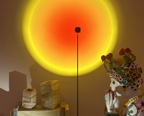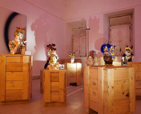 The title “UNBOXING” evokes the idea of unveiling, discovering the new, and appreciating the unexpected. Each displayed work has been chosen for its ability to surprise and tell a story. For example, Vanessa Semaino’s ceramic Moor’s heads, artistically and contemporarily reinterpreted, are simply placed on top of the transport boxes, thus embodying the spirit of movement and temporality. These elements invite visitors to seize the moment and immerse themselves in the ephemeral beauty of collectible design and art.